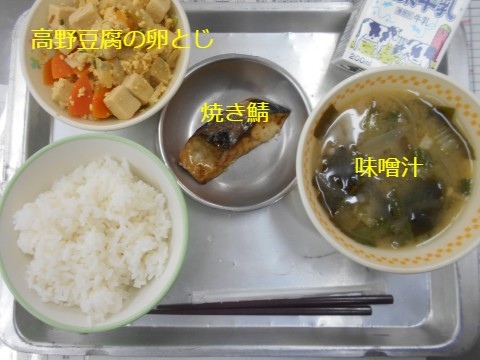 「和食の日」にちなんで、今日は、和食の献立です。卵とじに使われている高野豆腐は、昔から栄養価が高い保存食として日本では食べられています。