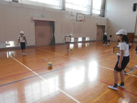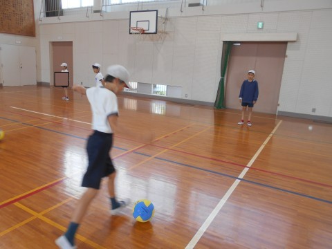 雨模様だったので,体育館でサッカーのパスの感覚をつかむ練習をしました!友だちと協力して練習することができていました!