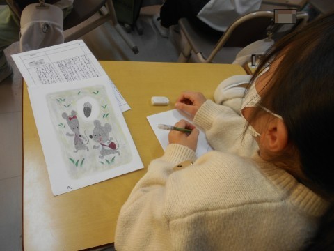 オリジナルのお話ができあがってきています!!お話がどんどん広がっている人もいて,2年生の創作意欲がすごいです!!色塗りも丁寧に仕上げることができていました!!