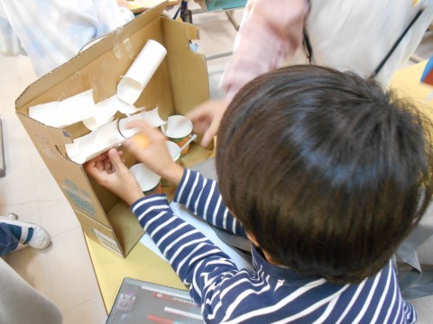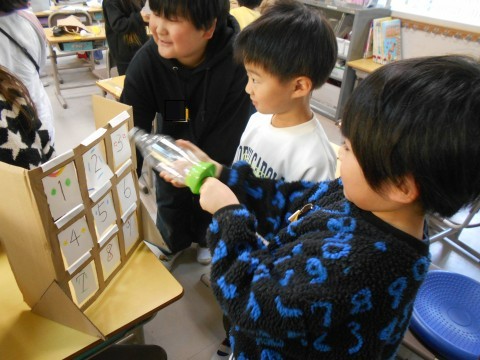 1年生を招待する「おもちゃランド」にむけて,おもちゃづくりに頑張っています!!楽しく遊べるように,おもちゃのレベルアップにも取り組んでいました!!
