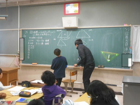5年生 算数 面積の求め方は・・・ 公開日 2025/12/03 更新日 2025/12/03 ●5年 今までに学習した図形の面積の求め方を思い出して,その求め方を活用しながらいろいろな図形の面積を求めていました!何通りもの求め方で答えを導くことができていました!! 5年生