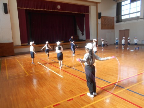 2年生 体育 なわとびに挑戦! 公開日 2025/12/04 更新日 2025/12/04 ●2年 かけあし跳びや,かたあし跳び,二重跳びなどいろいろな技に挑戦していました!!とっても意欲的に技にチャレンジすることができていました!! 2年生