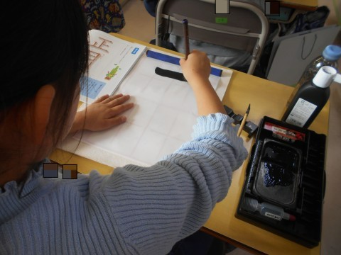 筆の持ち方や「とめ」や「はらい」,余白などに注意して,練習に取り組んでいました。教科書を何度もなぞって,本番にのぞんでいました!!