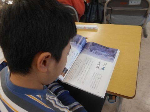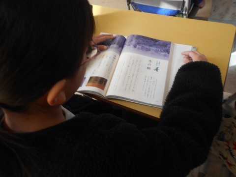 枕草子の「冬はつとめて・・・」の部分を読んで,冬のイメージを膨らませていました。難しい言葉も解説を読みながら,平安時代の人々がどう感じていたのかについて考えていました!