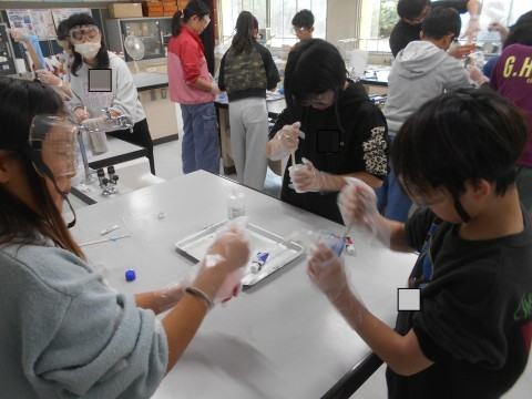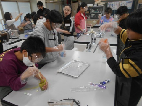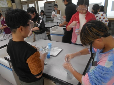 5年2組 お楽しみ!! 公開日 2025/12/17 更新日 2025/12/17 ●5年 お楽しみの実験です!スライムづくりに挑戦していました!自分の好きな色で,自分がイメージしている感触のスライムをめざして,調合を調整していました!!みんな楽しそうです!! 5年生