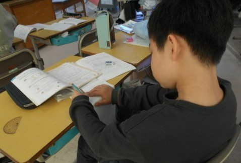これまでの復習問題に取り組んだり,答え合わせをしたりしています。