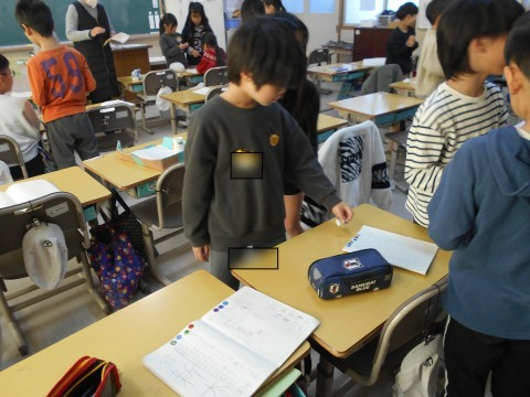 自主学習のノートをみんなで見あいました。いいなと思うノートにシールを貼っていきます。