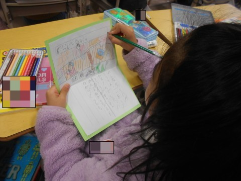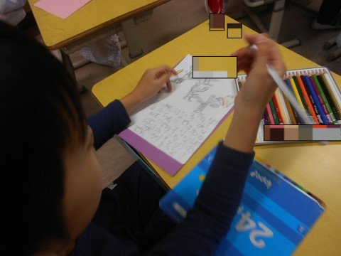 お気に入りの絵本の紹介リーフレットをつくっていました!!自分が好きな場面や,おすすめの場面の絵と文章をかいていました!!とってもいいリーフレットができあがっていました!
