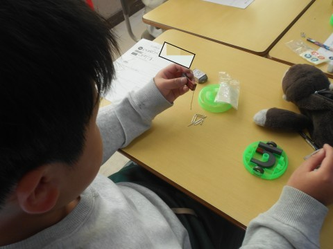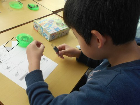 磁石につくものを試していました!釘やクリップなど磁石にたくさんくっつけて実験をしていました!真ん中のほうにはくっつかないことや,磁石にくっついた釘に釘がくっつくことなどを発見していました!!