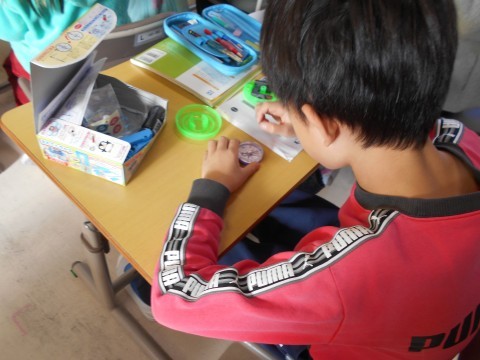 磁石につけたくぎは磁石のような働きをするのかを方位磁針を使って確かめました。