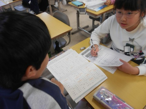 文章の中の漢字が「音読み」なのか「訓読み」なのかについて,漢字辞典や国語辞典などで調べて確認していました!友だちと相談しながら,答えを導きだしていました!!友だちと考え合うことができていました!!
