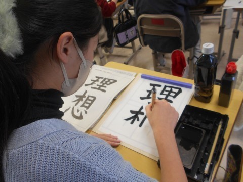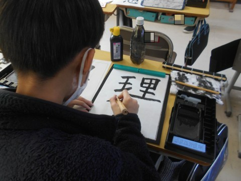 「理想」を毛筆で書いていました。一画一画丁寧に,「とめ」や「はらい」にも気をつけて清書に取り組んでいました!!