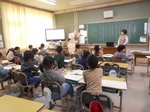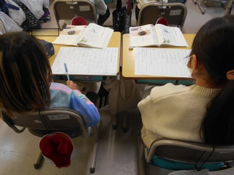 言葉を楽しむ学習をしました。上から読んでも下から読んでも同じになる文章を考えました。