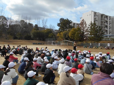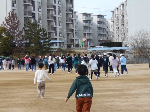 休み時間や放課後など,クラスのみんなといないときに地震や火災が起こったらどうすればいいのか。遊放時の避難訓練を行いました。避難の指示を放送で聞いてから4分6秒で全員が避難することができました。