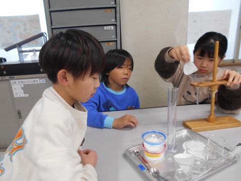 塩水をろ過すると,見た目には何もないように見えますが,水分を蒸発させると溶けていた塩分が取り出せます。理科では物の溶け方の実験をしました。算数では割合の問題に取り組んでいます。もとの量の130%の数字を出すのに二つの考え方で取り組んでいます。