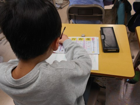 国語では進出漢字の学習をしていました。5年生の漢字も残り少なくなってきました。算数では割合の文章問題に取り組んでいます。線分図や図を使って考えます。