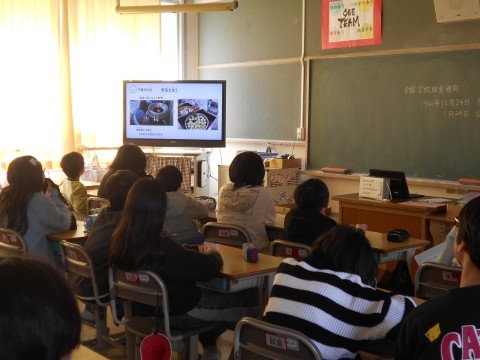 学校給食週間です。給食場の一日を動画で見て,おいしい給食ができるまでの様子を学びました。