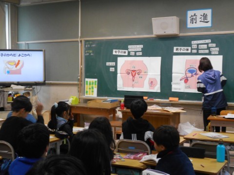 保健の先生が教室に来て,学習をしました。これから大人に向かって変化していく自分たちの体について学びました。