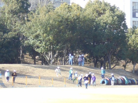 運動場で冬探しをしました。運動場に元気な声が響いています。