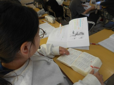 「大造じいさんとガン」の学習をすすめています。文章をしっかりと読んでいました!わからない言葉も辞書で調べてばっちりです!!