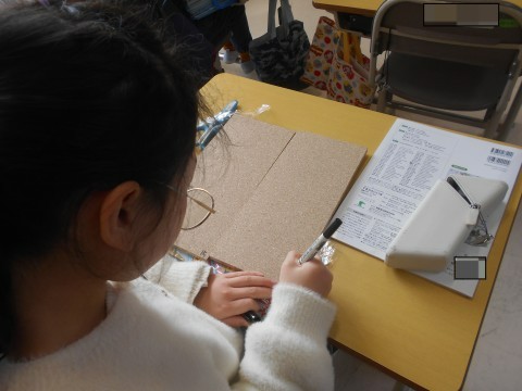 今日から,コリントゲームづくりに取り組んでいます!まずは,部品に自分の出席番号を書きました!その後,自分が好きなものなどをデザインしました!!