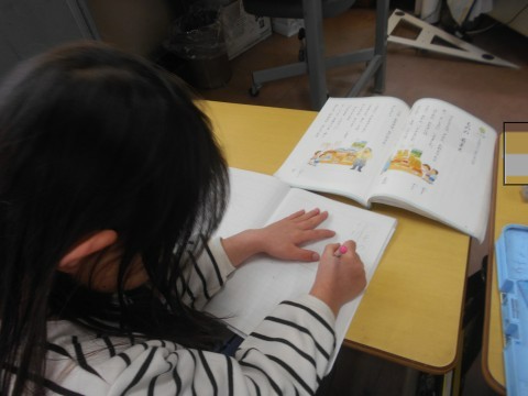 「さかな」や「くだもの」などの名前を集めて,ノートにたくさん書いていました!!教科書の絵や本文から見つけるだけでなく,自分が知っている名前も思い出して,どんどん書いていました!!