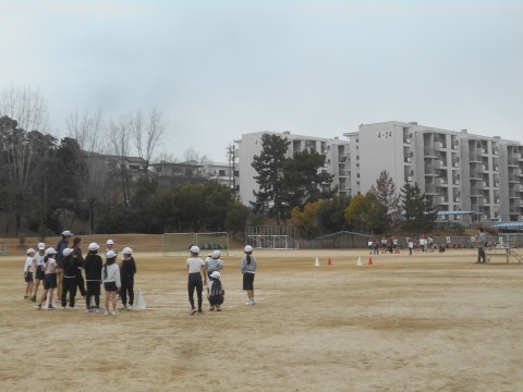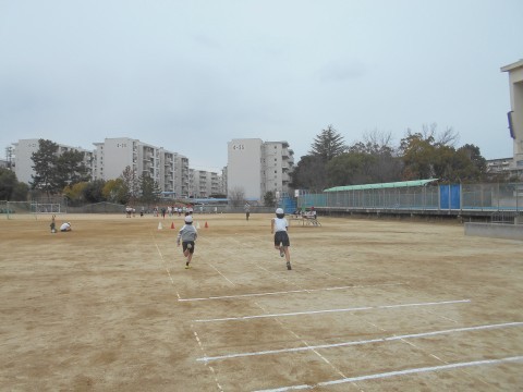 4年生 体育 ビーチフラッグに挑戦! 公開日 2026/02/20 更新日 2026/02/20 ●4年 ビーチフラッグのように,スタートから一斉に走って,コーンにタッチするゲームに取り組んでいました!担任の先生の合図で,一生懸命に駆け抜けていました! 4年生