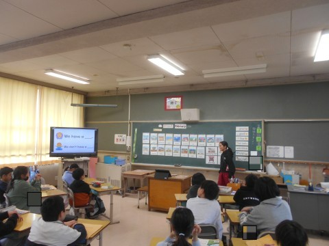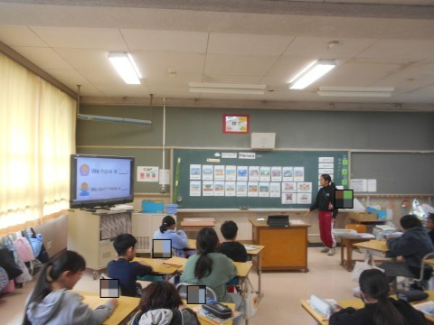 「We have」や「We don't have」の表現を使って,学校の近くにある施設の伝え方を学習していました!!学校の近くには「お寺」はないが,「神社」があるなど積極的に表現していました!!