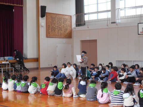 若松台こども園と青英幼稚園の子どもたちとわくわく広場を行いました。あいさつや簡単なゲームをした後,学校探検をしました。