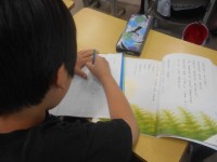 図書の先生に本を読んでもらった後,借りていた本を返してから新しい本を借ります。きちんと並んで返していますね。