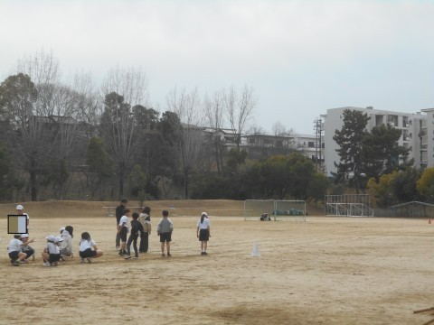学年末に「50m走」のタイムを計っていました。4月に計測したタイムと比較するようです。みんな元気に走ることができていました!