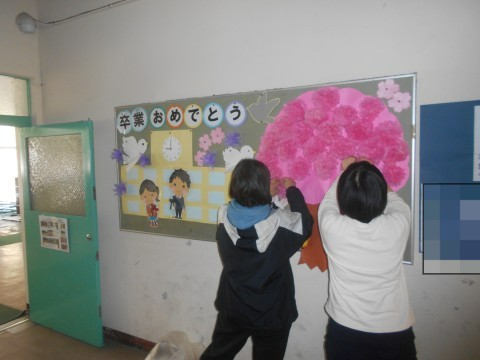 卒業式にむけて,廊下の掲示を変更しています!着実に卒業式の準備がすすんでいます!!