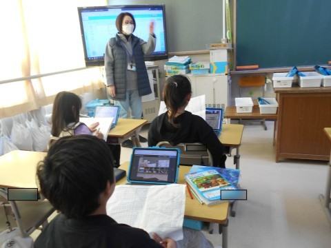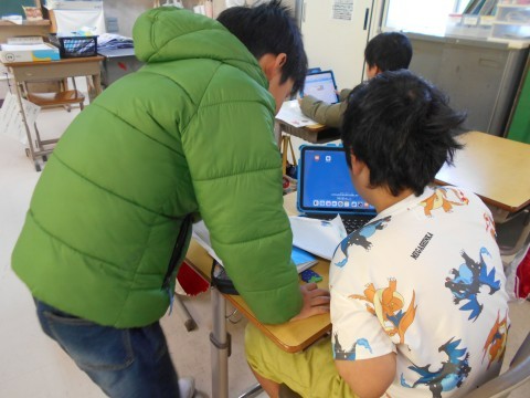 校内のお気に入りの場所をみんなに教えます。それぞれお気に入りの場所を写真に撮っています。