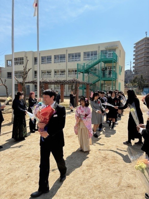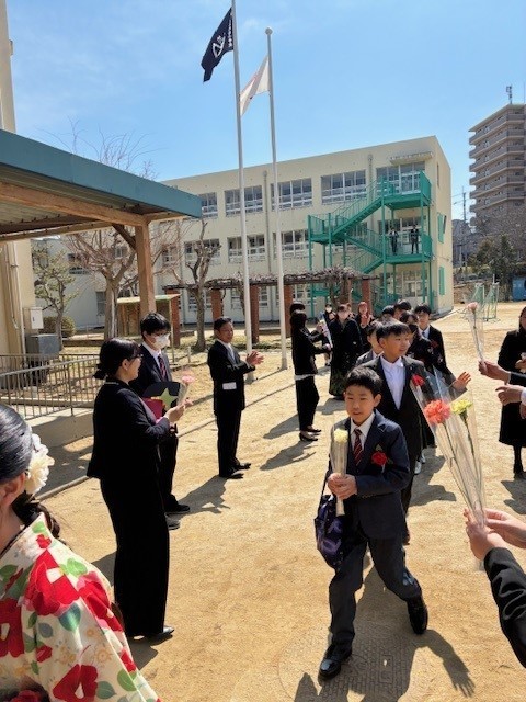 最後の授業のあと,無事に巣立っていきました!!晴天の中,33人は笑顔で卒業していきました!!本当にご卒業おめでとうございました!!