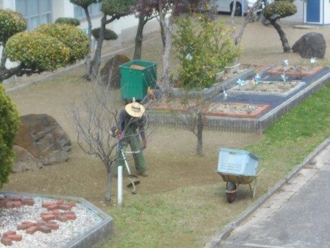 みなさんが気持ちよく登校できるように,7日入学式と8日始業式むけて,草を刈ってきれいにしてくださっています!!いつもありがとうございます!!