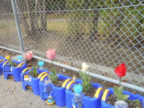 昨年度1年生が植えたチューリップが満開です!!いろいろな色の花が咲いています!!とってもきれいです!!