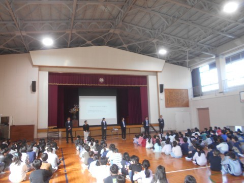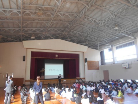 若松台小学校に赴任してこられた先生方を紹介しました。みんなで大きな声で「よろしくお願いします」とあいさつをしました。校長先生からは,この1年間に頑張ってほしい「なぜ」「どうかな」「やってみよう」「伝えたい」「つながり合う」の話がありました。生徒指導の先生からは,「信号をまもろう」「自分からあいさつをしよう」「なふだをつけよう」の話がありました。みんなよく話を聞くことができていました!!