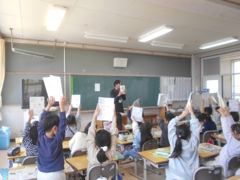 新しい教科書が配られました!みんなで,自分の教科書があるのか確認しました!!担任の先生が「算数!」と言うと,算数の教科書をみつけて,先生に見えるようにしていました!!よく話を聞くことができています!!