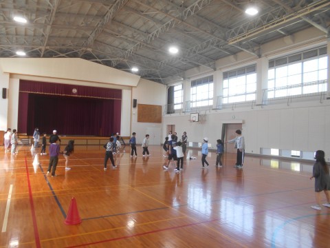 わかまつ学級の朝の会の様子です。自己紹介をしてから,みんなでドッチビーをして楽しみました!!