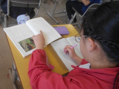 6年2組 国語 「帰り道」 公開日 2026/04/16 更新日 2026/04/16 ●6年 主人公二人の人物像をとらえるために,教科書の文章を読み込んでいました!集中してしっかりと読むことができていました! 6年生
