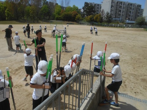 2年生 体育 竹馬と一輪車にチャレンジ!