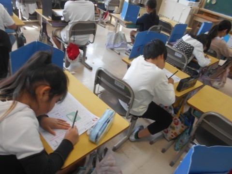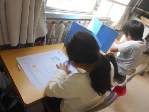 4年生 国語 「白いぼうし」のテストに挑戦! 公開日 2026/04/28 更新日 2026/04/28 ●4年 「白いぼうし」の学習の単元末テストにチャレンジしていました!テスト開始まで,教科書や漢字ドリルをみて確認していました!! 4年生