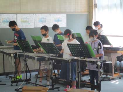 音楽室から「和」なメロディが聞こえてきます。音楽室に行ってみると,5年生が民謡「八木節」の合奏の練習をしていました。和太鼓も音楽室に出ていました。