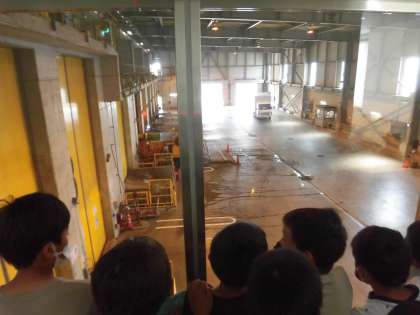 施設の人に詳しく説明していただき、窓越しに施設のいろいろな装置を見せてもらいました。