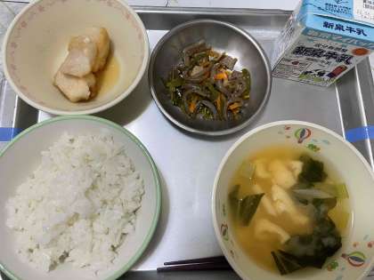 今日の給食は、ごはん、みそ汁、チキン南蛮、きんぴらピーマン、牛乳でした。