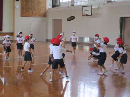 「ドッチビー」です。だんだんルールもわかってきて,うまくなってきました。