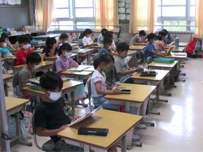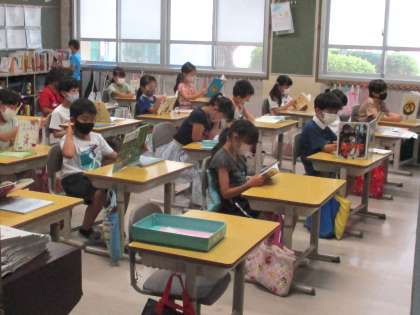 静かな音楽が流れる中,朝の時間に読書をしています。