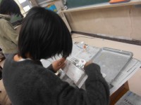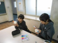 ”I study(教科名) with(人)”の文の学習です。それぞれ前の時間に学習した教科の英語名を当てはめて考えていました。