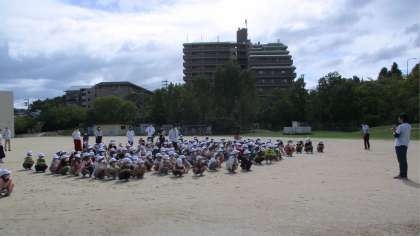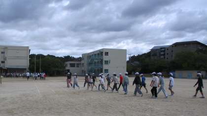 今日,2時間目に地震の後,火災が起きた想定で避難訓練を行いました。「押さない」「走らない」「しゃべらない」「もどらない」を意識して集合しました。