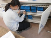 キャンプファイヤ場の足場が悪いので、室内でキャンドルファイヤに変更して実施しています。実行委員さんがとってもがんばっています